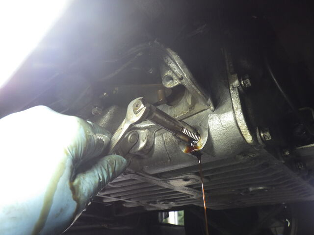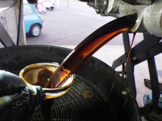 オイルを抜いていきます。抜いたオイルの色は、濃褐色でした。