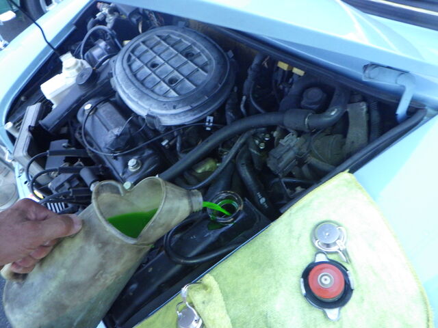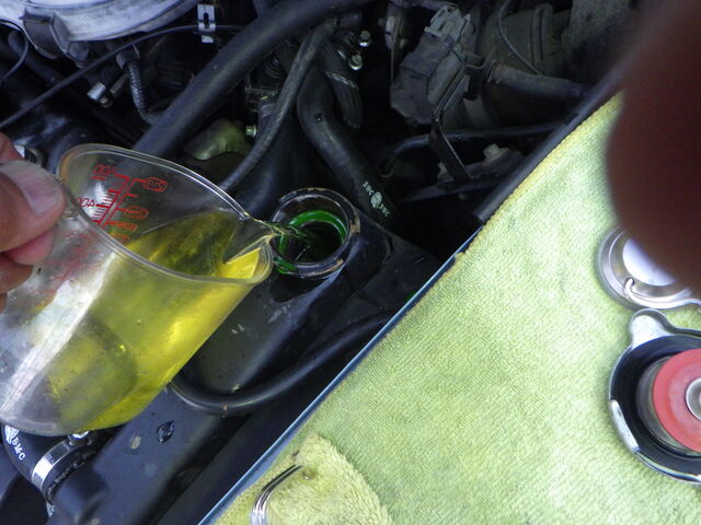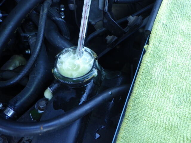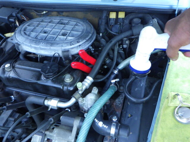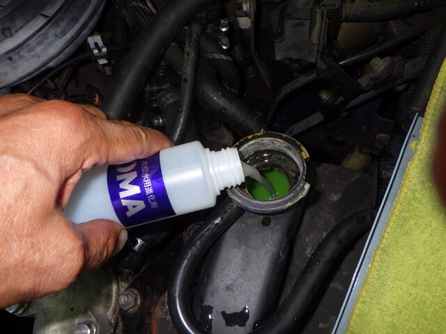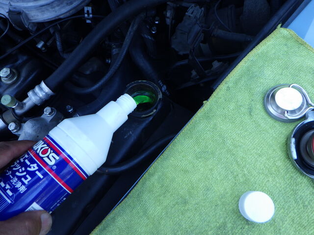 ラジエターフラッシュいれてエンジン始動で洗浄開始