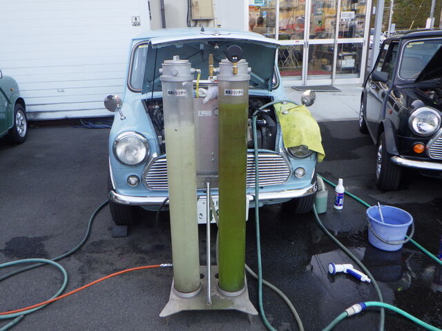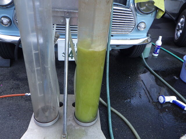 左側のヒーターコアの逆流水からは最初の内は少し錆っぽい汚れもでてきました