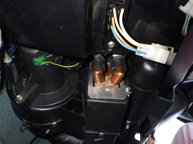 後期モデルはヒーターコアの横にバルブが付いてますが