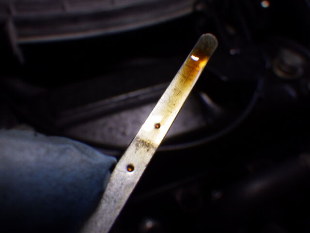 燃料希釈によるオイルの粘度低下の目安となるガソリン臭は中くらいでした。