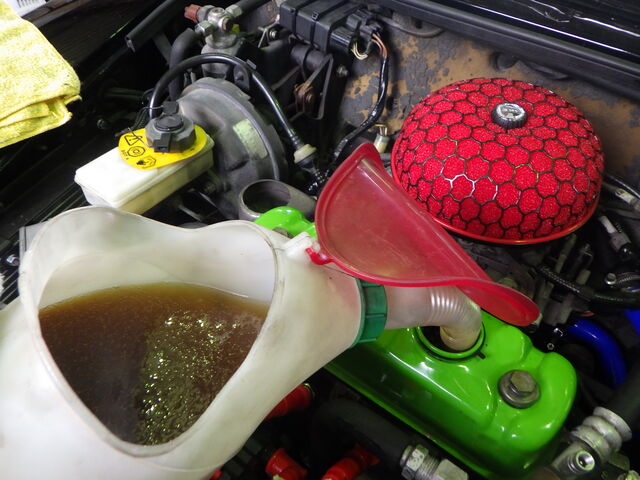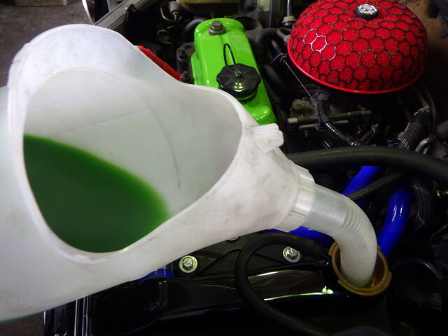 ラジエターフラッシュいれてエンジン始動で洗浄開始