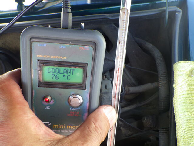 エンジン側の水温センサーの温度とラジエターに挿した温度計がほぼ同じように水温上昇しています。。。