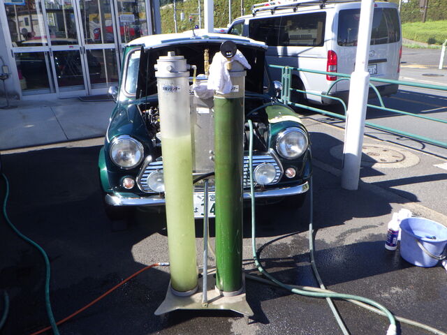排水。。 緑色は少し濁っていて汚れが出てきました。
