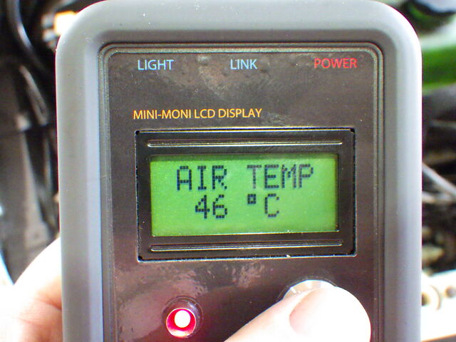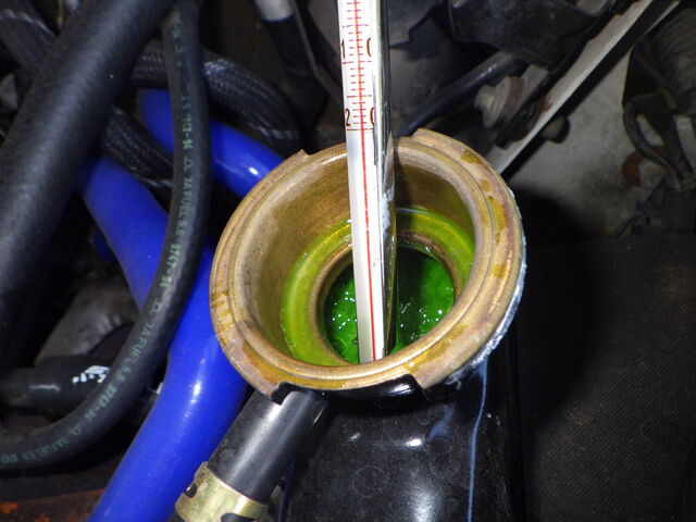 ラジエターに挿した温度計は84℃まで上昇しています。。。