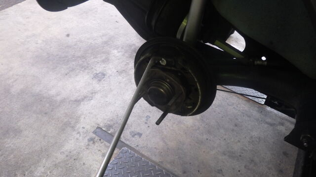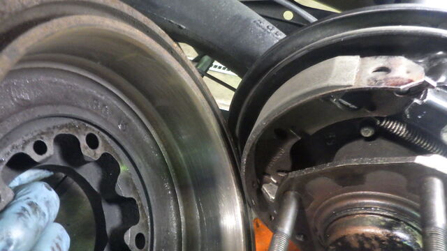 ライニングとドラム面に軽くペーパーをあてて組付けます。