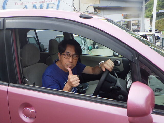 ピンクの代車でお帰りです。