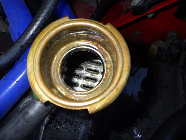 ラジエターに勢いよく流れ込んできてるのが見えます。。