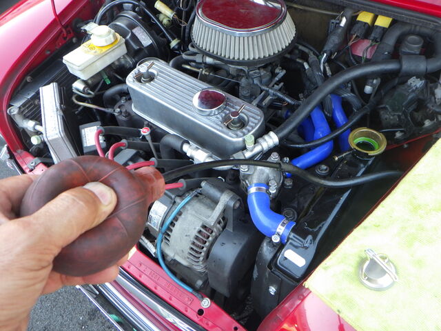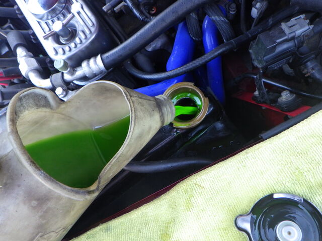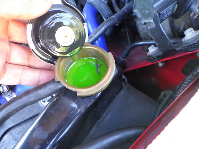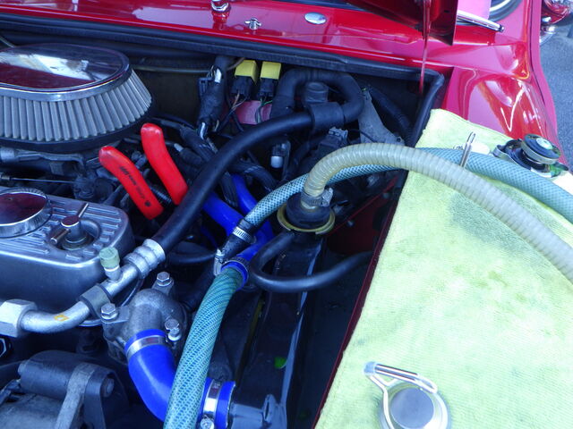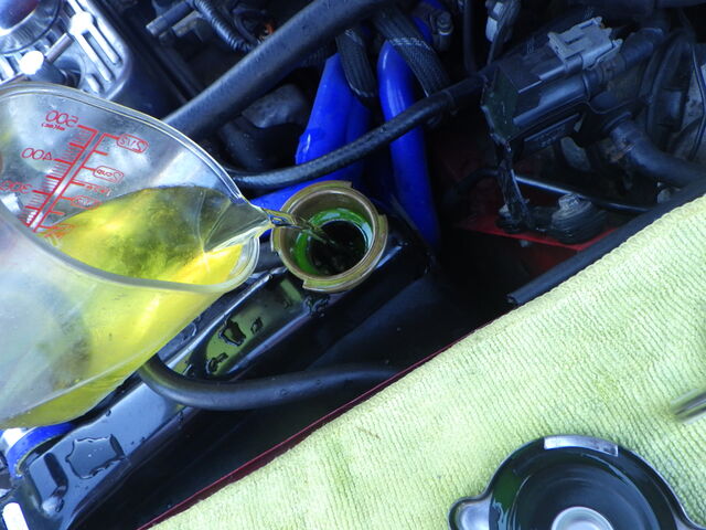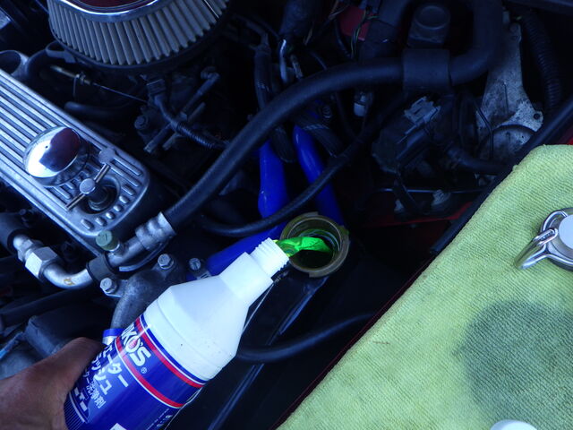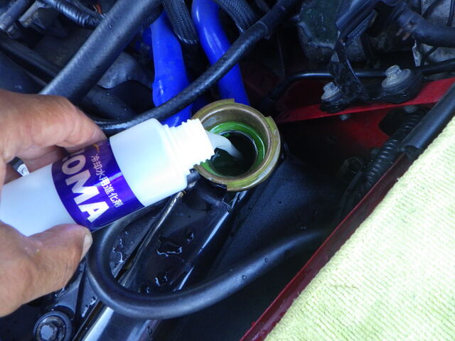 ラジエターフラッシュいれてエンジン始動で洗浄開始