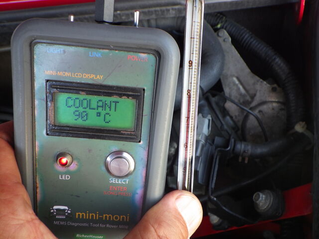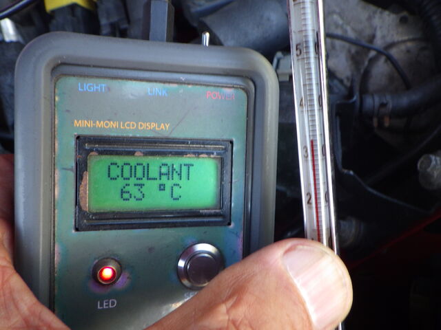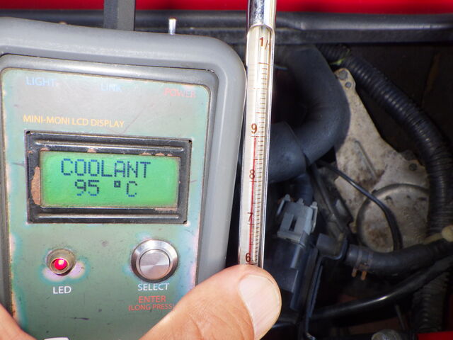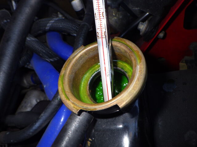 インマニの下にある水温センサーの温度は上昇を始めますがラジエターに挿した温度計は35℃のまま