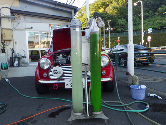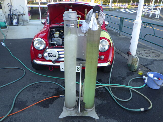 ラジエターから逆流で吸い上げてラジエターの汚れを出します。。
