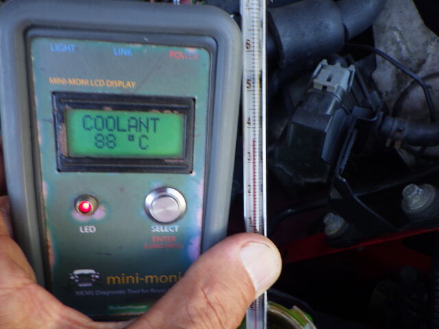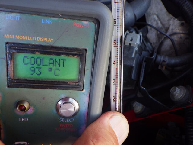 先ほど水温センサー93℃でサーモスタットが開き始めたのはサーモスタット周辺が88℃だったんですね。。。サーモスタットの作動温度も完璧です。。。