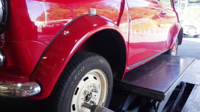 車高はギリギリ大丈夫そうですが確実に合格するように12インチのタイヤに交換しておきます。