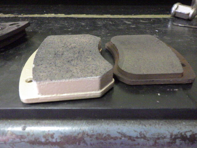 新しいブレーキパッドは角をおとして鳴き止めの面取り。
