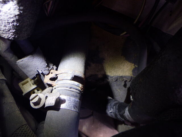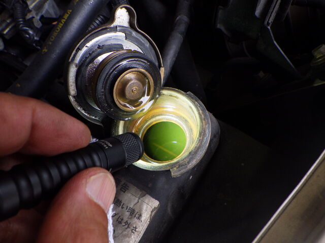 冷却水は汚れで濁ってます。。キャップのパッキンから垂れる雫に錆が見えます。