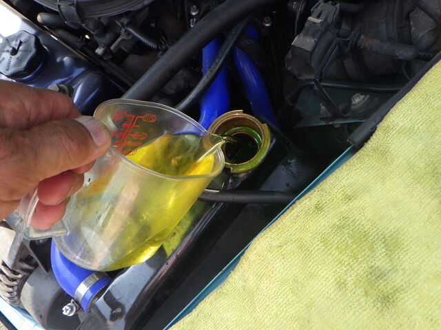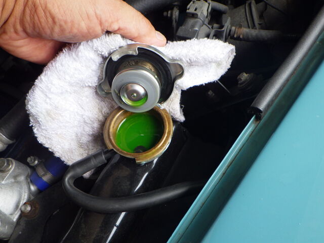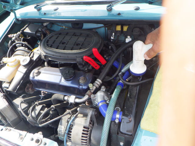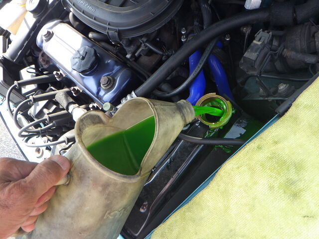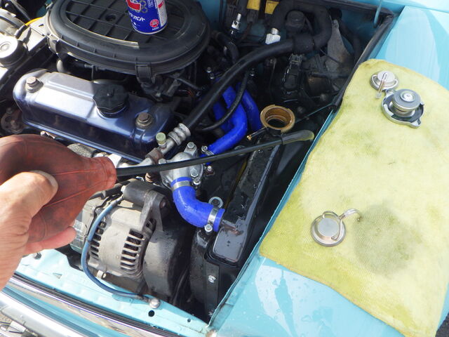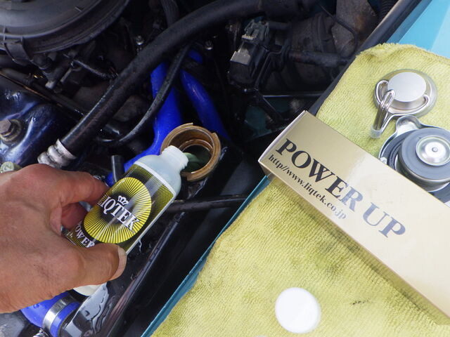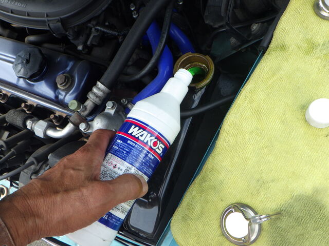 ラジエターフラッシュいれてエンジン始動で洗浄開始