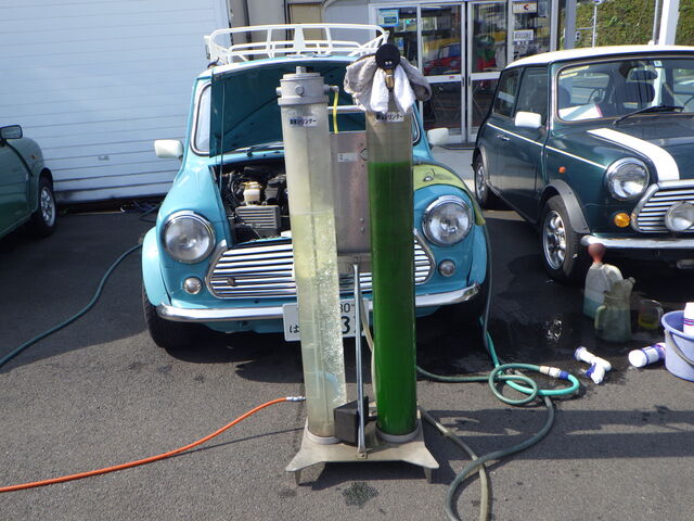 左がヒーターコアから…右がラジエターからの逆流水です。。。