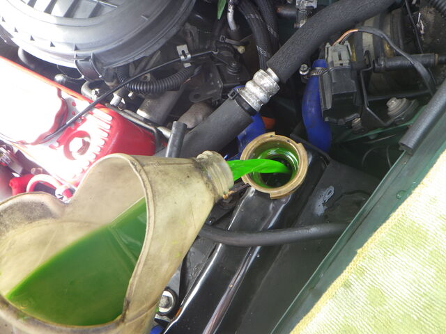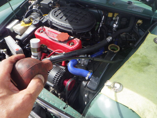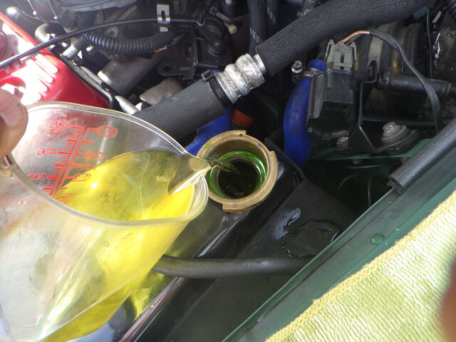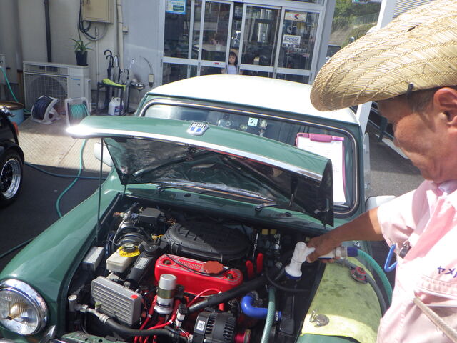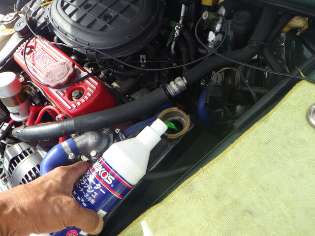 ラジエターフラッシュいれてエンジン始動で洗浄開始