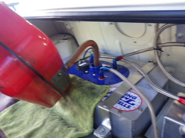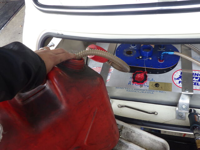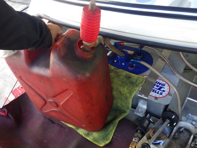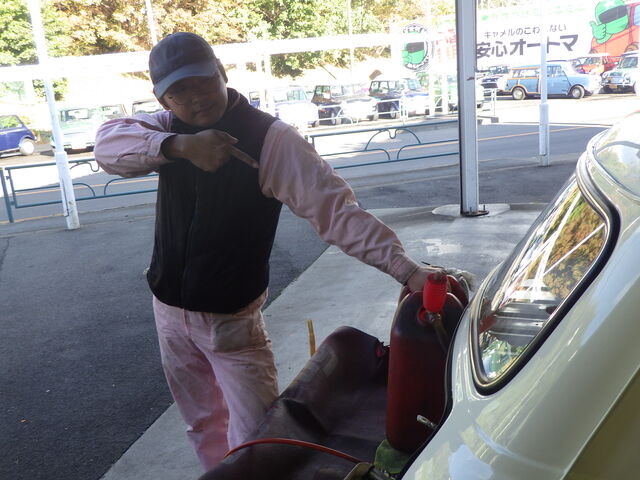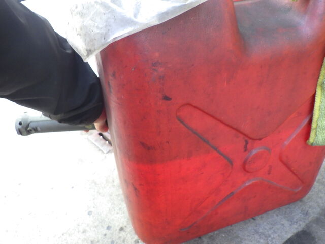 続いて、ガソリンを戻してさらに携行缶で満タンまで入れてみます。