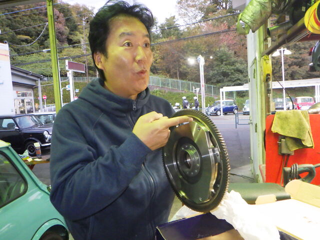 新旧交換の儀。軽量フライホイールに交換します。