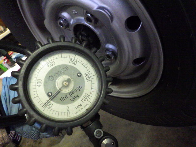 タイヤの空気圧はフロント220kpaリア200kpaで合わせておきました。