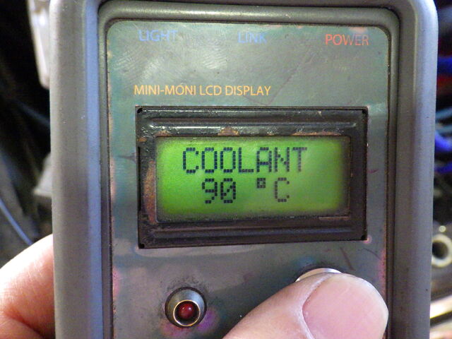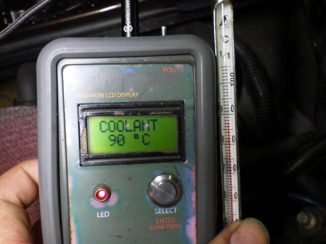 このときの温度は90℃、サーモスタッドの規定の開弁温度は88℃なので多少誤差はありますがサーモスタッドはしっかりと動作しています。