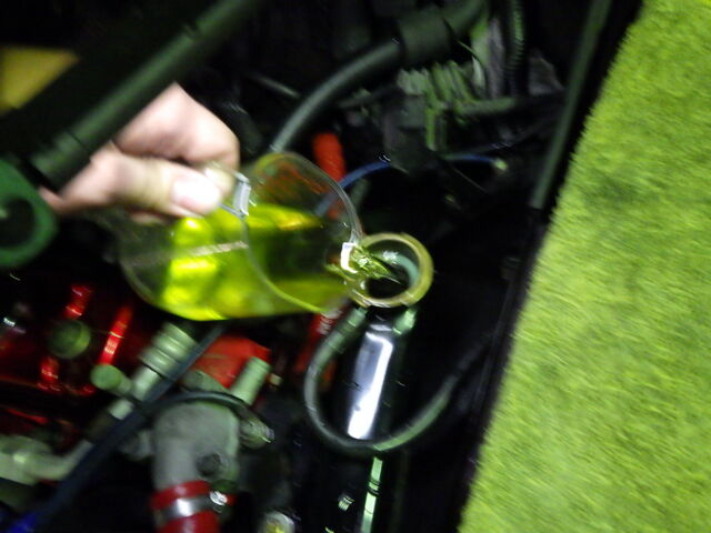 ラジエーターにLLCと水路保護のためのクーラントブースターを投入。