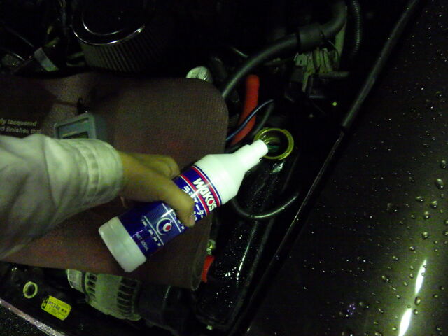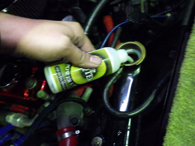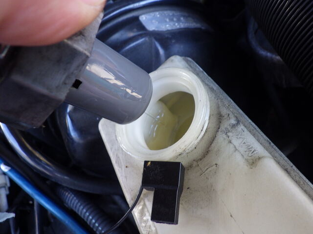 ラジエーターに洗浄剤を投入。