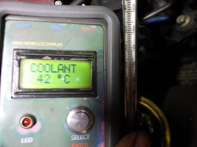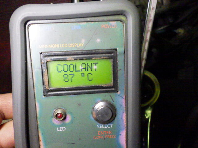 エンジン側の水温センサーとラジエーター側の水温計にしっかりと温度差があります。サーモスタッドはしっかりと閉じています。