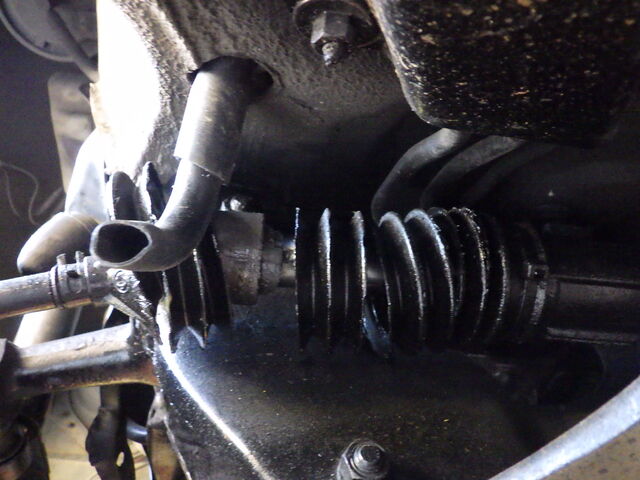 破れてしまったラックブーツは国産車流用のものに交換します。