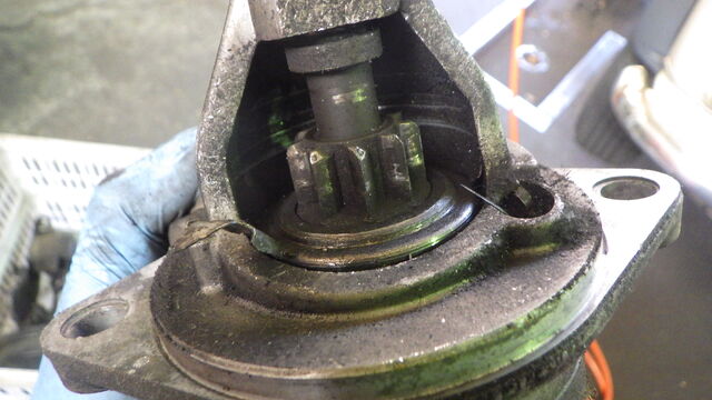 クラッチハウジングを外すためセルモーターを外したところ、なにか異物がくっついています
