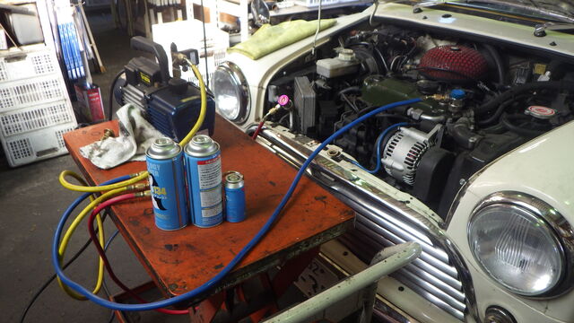 新しいクラッチを組み込む際、クーラーの部品を外したのでクーラーガスを入れ直しました。