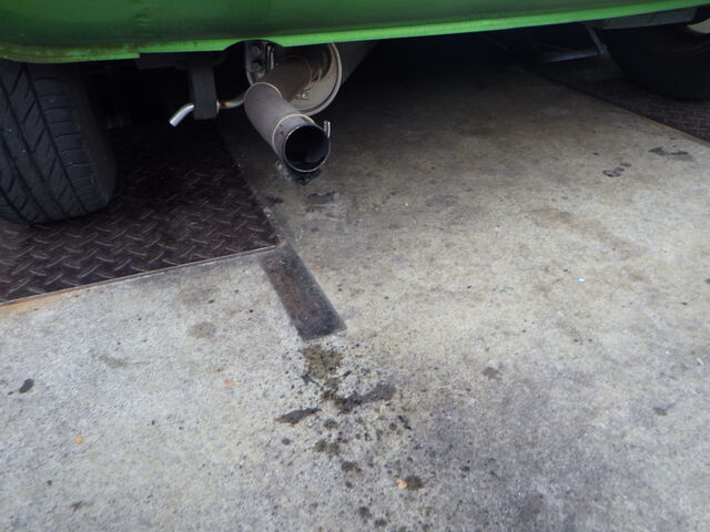 いままでマフラーに水滴なんてありませんでしたが、エンジンフラッシングによって空燃比が理論空燃比に近づいたことで水が発生したものと考えられます。