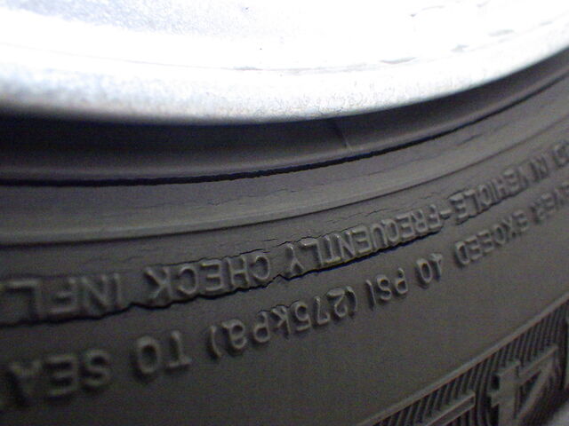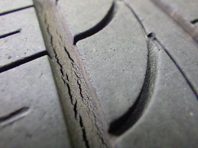 タイヤには深いクラックが無数にあります。