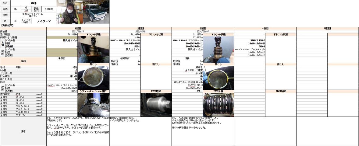 前回からだいぶ空きましたがオイルカルテに追記しておきます。
