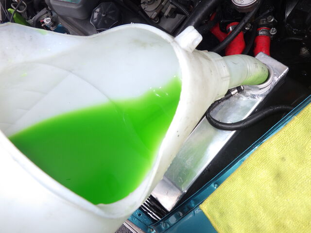 水路洗浄後は、クーラントブースターとLLCを入れて水路のエアー抜きをしておきました。