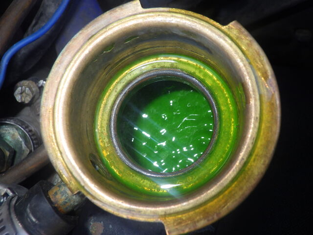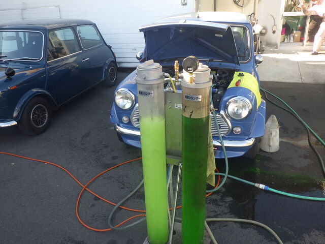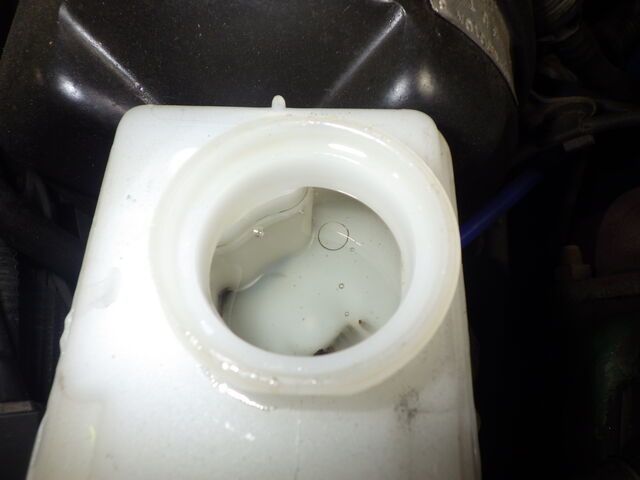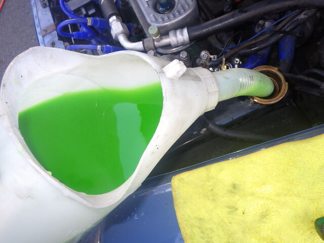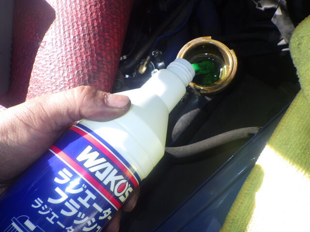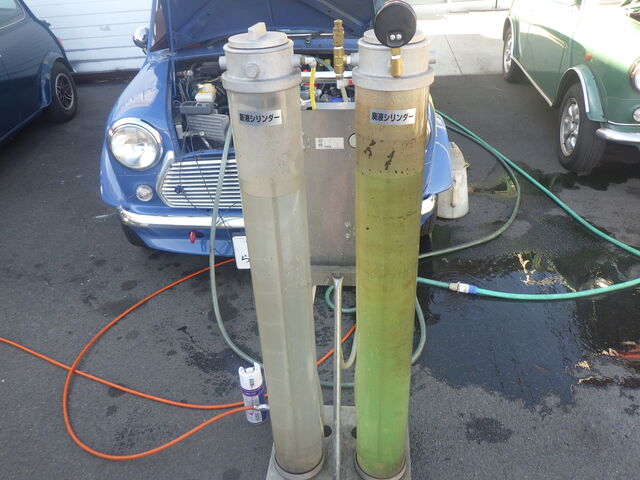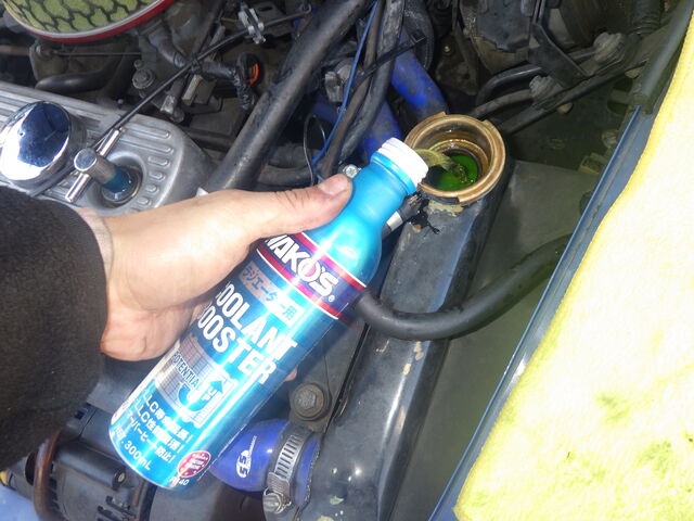 水路洗浄が完了したのでLLCと持ち込みクーラントブースターを入れて水路のエアー抜きをして水路洗浄は完了。