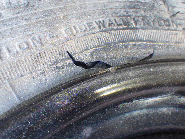 このままでは使えないのでタイヤ交換するかパンク修理剤積むかした方が良いです。
