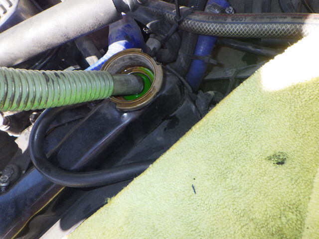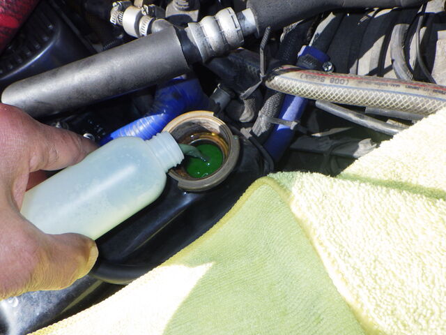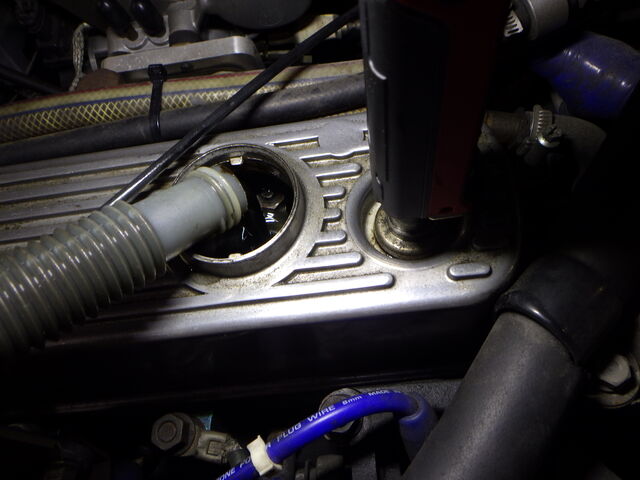 今回は継足しなのでオイルに混ぜた高濃度モリブデンをエンジンを掛けたまま入れます。。