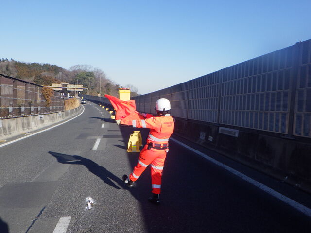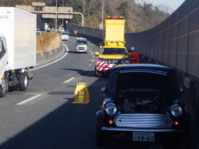 後から来たNEXCOの黄色いパトカーとメンバーチェンジ。。