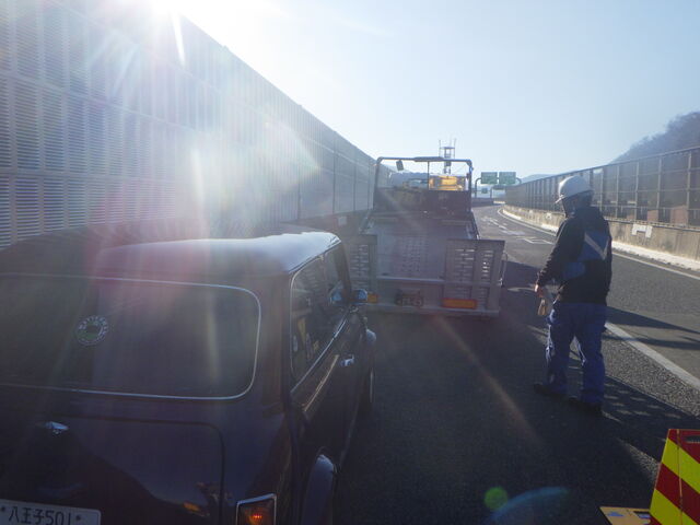 キャメルの積載車は昨日車検に出しちゃったんで保険レッカーに頼むしかない・・