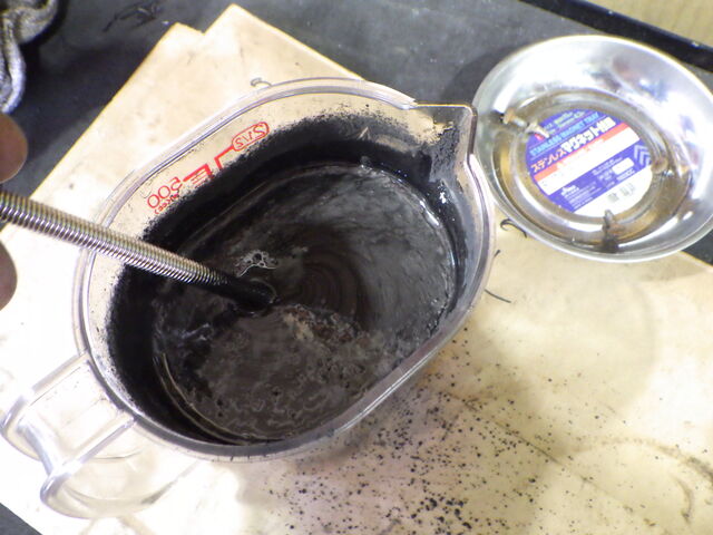 細かなモリブデンパウダー・・・手も黒くなるし 風に舞うし・・・
