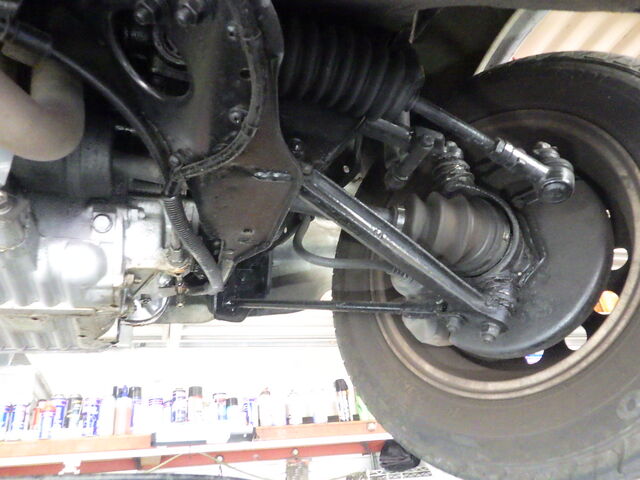 リアは左右のナックルジョイントのブーツが縮んで外れてしまっています。