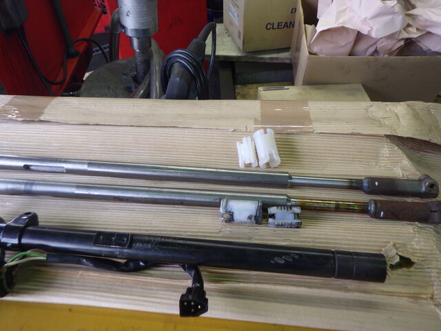 ステアリングラックとコラム(ステアリング)シャフトのスプラインを確認してみるとコラムシャフト側のスプラインが削れてしまっていました。