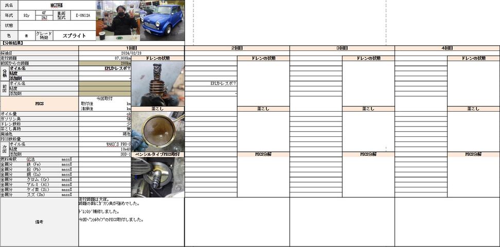 今回キャメルでは初のオイル交換でしたのでオイル点検カルテを作りました。