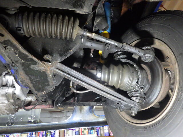 リアのナックルジョイントのブーツも劣化してソケットから抜けてしまっています。