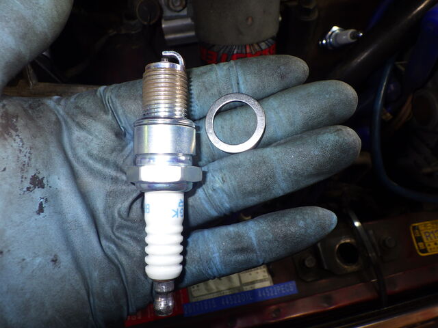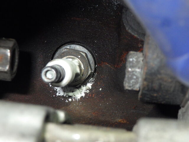 プラグを点検しようとしたところ一番のプラグ周辺に白い粉が・・