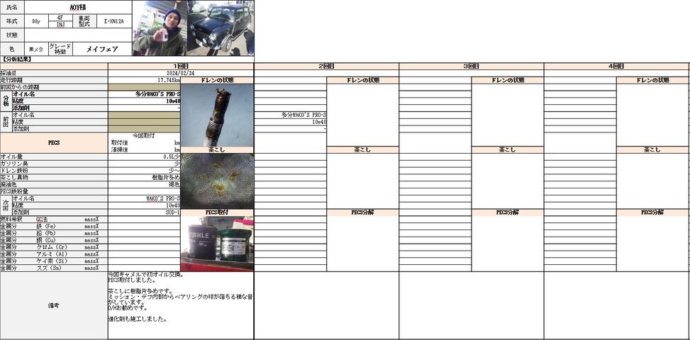 今回キャメルでは初のオイル交換だったのでオイル点検カルテを作りました。