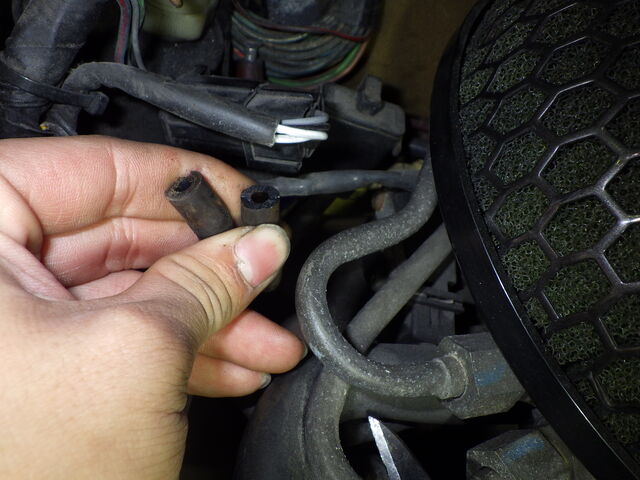 症状から見てバーキュームパイプやスロポジが怪しそうだなと感じていましたがやはりバキュームパイプのフューエルトラップからインマニ裏へつながっているパイプが抜けていました。