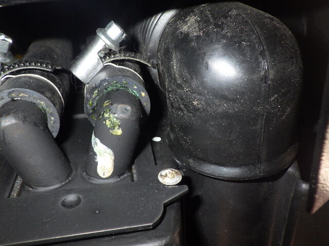 ヒーターコアから過去に漏れた形跡が・・・よく見るとホースのような気もしますね?